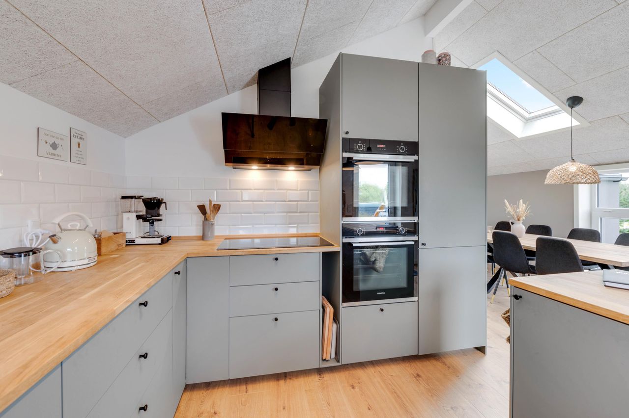 Huset rummer 6 lyse og rummelige værelser, der giver god plads til både familie og gæster. Dertil kommer hele 3 flotte badeværelser – alle med gulvvarme – hvilket sikrer en behagelig start på dagen og ekstra komfort året rundt. Det stilrene og velindrettede køkken ligger i åben forbindelse med spiseafdelingen, som igen glider naturligt over i den hyggelige stue med brændeovn. Her skabes et skønt samlingspunkt, hvor familien kan samles om madlavning, brætspil og lange aftener foran ilden. I husets modsatte ende finder du et stort aktivitetsrum med masser af muligheder – hvad enten det er bordfodbold, filmhygge eller afslapning, der er på programmet.